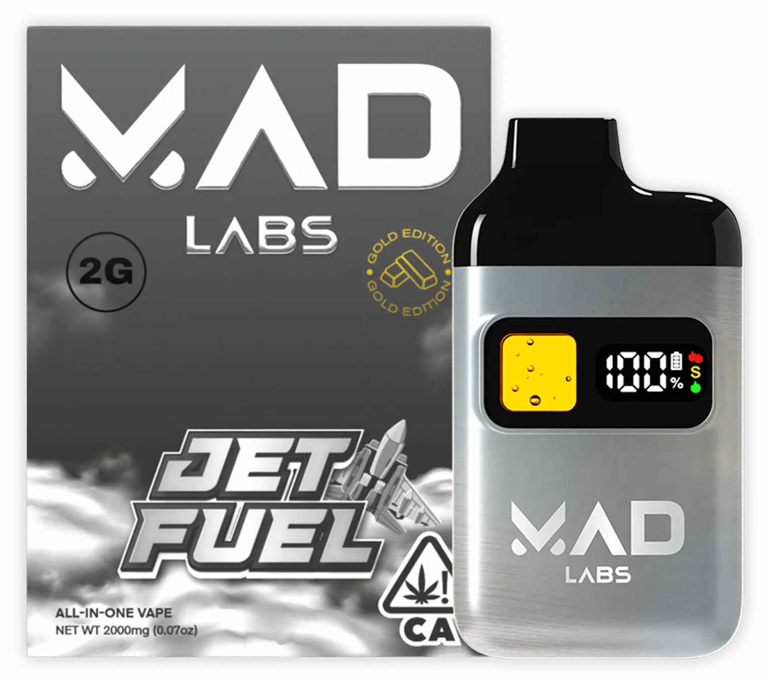 Mad Labs 2G Jet Fuel is a disposable vape pen pre-filled with a potent, high-quality extract. Known for its uplifting effect, this product delivers a smooth and powerful experience every time. The term “jet fuel” alludes to its intense potency, designed for users who seek a robust and immediate impact. Each Mad Labs disposable is crafted to ensure consistency and reliability.